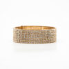 Brazalete de strass color dorado con cierre abierto para colocar de forma cómoda y sencilla. Se abre con facilidad y tiene un diseño elegante para tu look de fiesta.