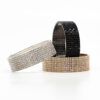 Brazalete de strass color negro con cierre abierto para colocar de forma cómoda y sencilla. Se abre con facilidad y tiene un diseño elegante para tu look de fiesta.