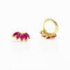 Pendiente de aro en Plata de Ley con baño de oro y cristales color fucsia.