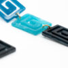Pendientes de resina con forma de espiral color azul. El cierre es de acero inoxidable y son muy ligeros.