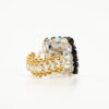 Anillo combinado en negro y blanco hecho a mano con tupi de 4mm de cristal de Swarovski y base elástica, se adapta a cualquier medida.